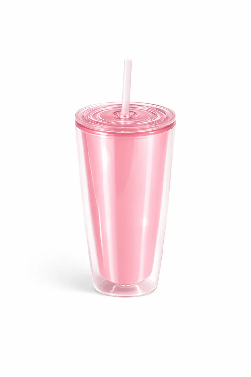 גימור מבריק | קש שקוף | מבנה כפול | קל משקל | מתאים לשתייה קרה | צבע ורוד אלגנטי